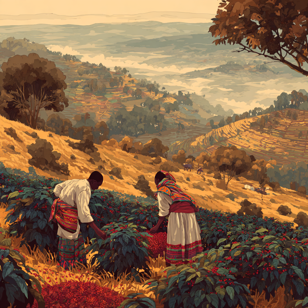 إثيوبيا، مهد القهوة الأول، تتميز بمزارعها الممتدة في المرتفعات الخضراء حيث التربة الخصبة والمناخ المعتدل. تنتج حبوبًا فريدة بطابع زهري وفاكهي ونفحات عسلية رقيقة. المزارعون هناك يحافظون على طرق الزراعة القديمة، مما يجعل القهوة الإثيوبية رمزًا للأصالة والجذور.